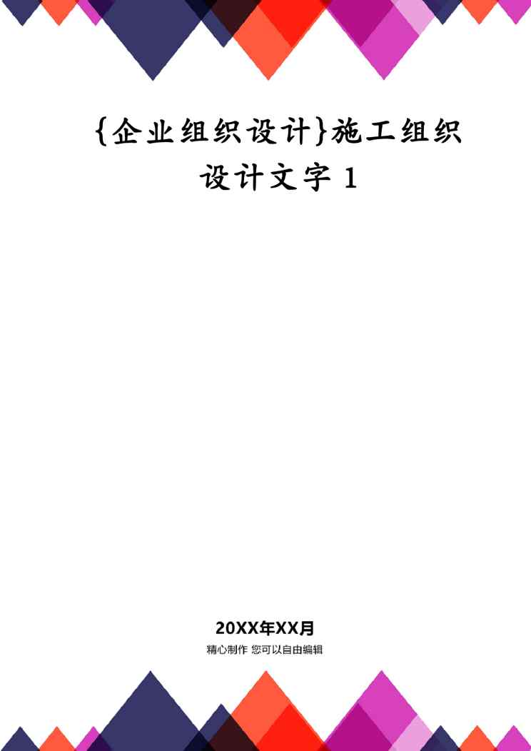 本站资深用户发布了最新的《{企业组织设计}施工组织设计文字1》文档,以下内容为预览,详细内容可下载阅读。 声明:本站所有文章,如无特殊说明或标注,均为本站原创发布。任何个人或组织,在未征得本站同意时,禁止复制、盗用、采集、发布本站内容到任何网站、书籍等各类媒体平台。如若本站内容侵犯了原著者的合法权益,可联系我们进行处理。