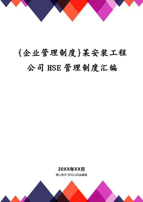 本站正式发布了《{企业管理制度}某安装工程公司HSE管理制度汇编》文档,文档详细内容可下载阅读。 声明:本站所有文章,如无特殊说明或标注,均为本站原创发布。任何个人或组织,在未征得本站同意时,禁止复制、盗用、采集、发布本站内容到任何网站、书籍等各类媒体平台。如若本站内容侵犯了原著者的合法权益,可联系我们进行处理。