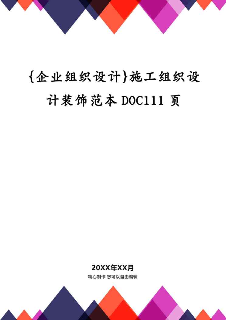 本站资深用户发布了最新的《{企业组织设计}施工组织设计装饰范本DOC111页》文档,以下内容为预览,详细内容可下载阅读。 声明:本站所有文章,如无特殊说明或标注,均为本站原创发布。任何个人或组织,在未征得本站同意时,禁止复制、盗用、采集、发布本站内容到任何网站、书籍等各类媒体平台。如若本站内容侵犯了原著者的合法权益,可联系我们进行处理。