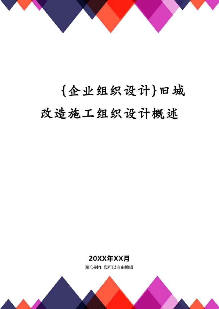 本站资深用户发布了最新的《{企业组织设计}旧城改造施工组织设计概述》文档,以下内容为预览,详细内容可下载阅读。 声明:本站所有文章,如无特殊说明或标注,均为本站原创发布。任何个人或组织,在未征得本站同意时,禁止复制、盗用、采集、发布本站内容到任何网站、书籍等各类媒体平台。如若本站内容侵犯了原著者的合法权益,可联系我们进行处理。