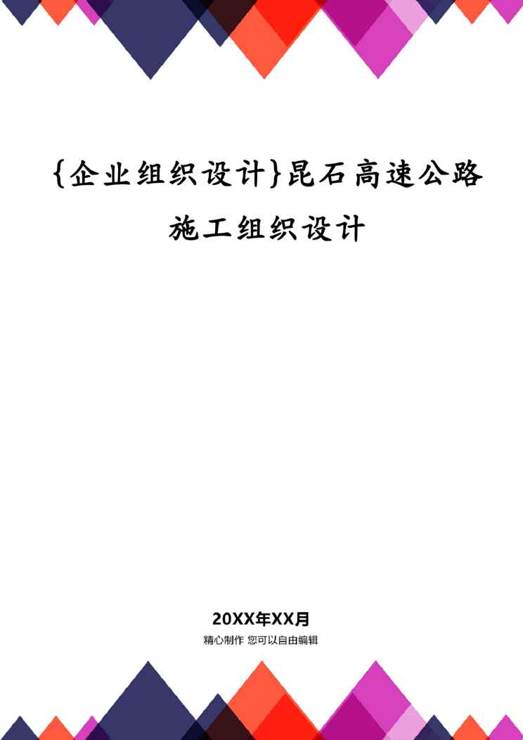 本站正式发布了《{企业组织设计}昆石高速公路施工组织设计》文档,文档详细内容可下载阅读。 声明:本站所有文章,如无特殊说明或标注,均为本站原创发布。任何个人或组织,在未征得本站同意时,禁止复制、盗用、采集、发布本站内容到任何网站、书籍等各类媒体平台。如若本站内容侵犯了原著者的合法权益,可联系我们进行处理。