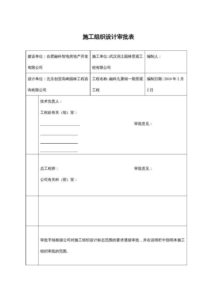 本站正式发布了《{企业组织设计}景观施工组织设计》文档,文档详细内容可下载阅读。 声明:本站所有文章,如无特殊说明或标注,均为本站原创发布。任何个人或组织,在未征得本站同意时,禁止复制、盗用、采集、发布本站内容到任何网站、书籍等各类媒体平台。如若本站内容侵犯了原著者的合法权益,可联系我们进行处理。