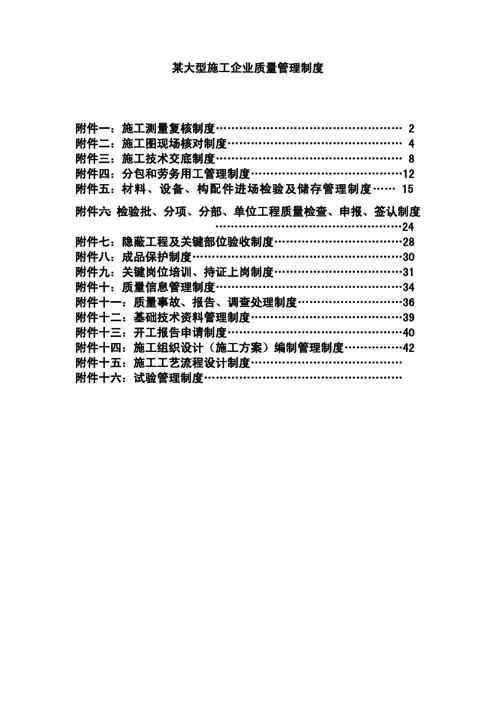 本站资深用户发布了最新的《{企业管理制度}某大型施工企业质量管理制度》文档,以下内容为预览,详细内容可下载阅读。 声明:本站所有文章,如无特殊说明或标注,均为本站原创发布。任何个人或组织,在未征得本站同意时,禁止复制、盗用、采集、发布本站内容到任何网站、书籍等各类媒体平台。如若本站内容侵犯了原著者的合法权益,可联系我们进行处理。