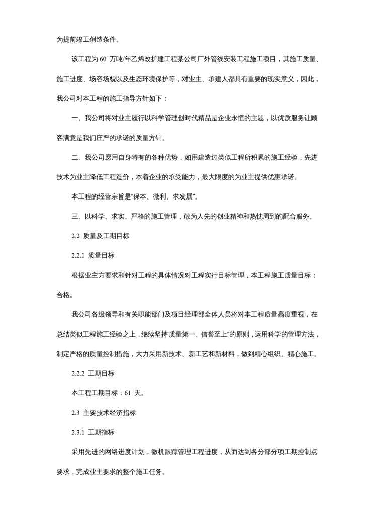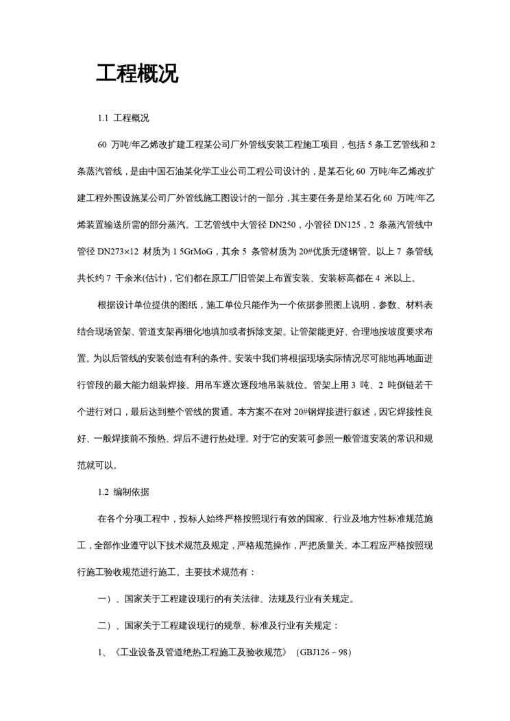 本站资深用户发布了最新的《{企业组织设计}某公司厂外管线安装施工组织设计讲义》文档,以下内容为预览,详细内容可下载阅读。 声明:本站所有文章,如无特殊说明或标注,均为本站原创发布。任何个人或组织,在未征得本站同意时,禁止复制、盗用、采集、发布本站内容到任何网站、书籍等各类媒体平台。如若本站内容侵犯了原著者的合法权益,可联系我们进行处理。