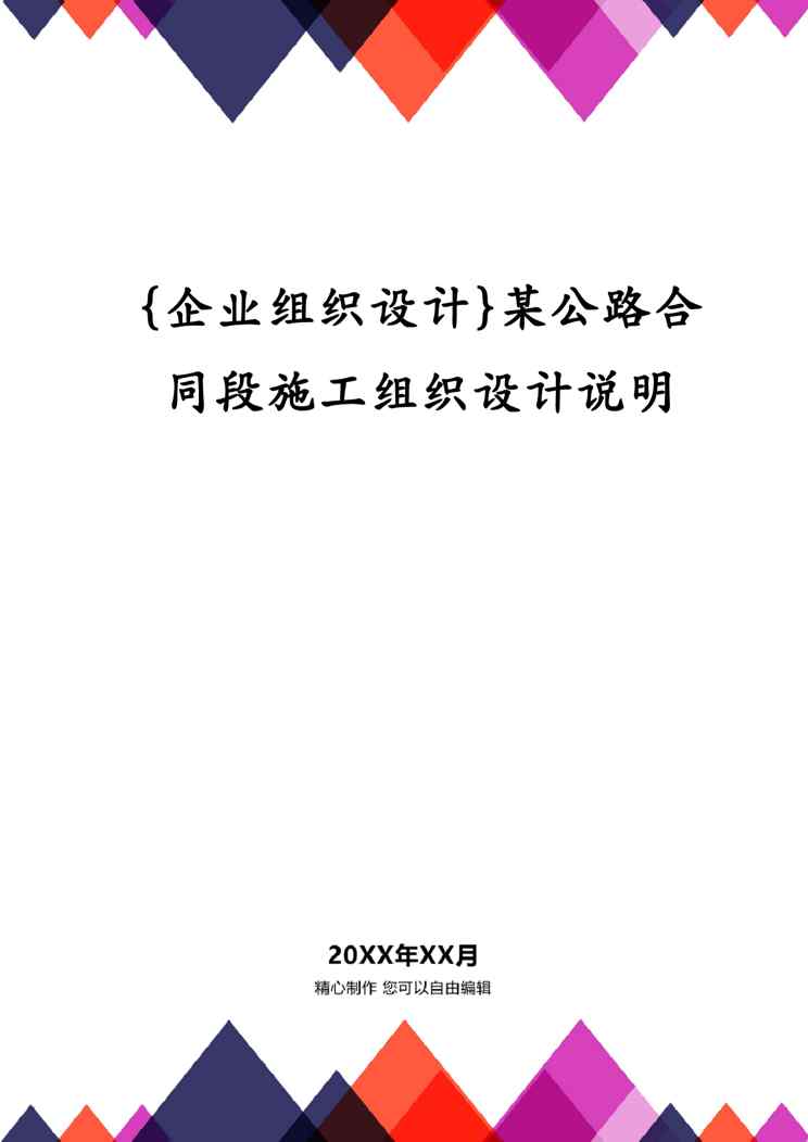 本站资深用户发布了最新的《{企业组织设计}某公路合同段施工组织设计说明》文档,以下内容为预览,详细内容可下载阅读。 声明:本站所有文章,如无特殊说明或标注,均为本站原创发布。任何个人或组织,在未征得本站同意时,禁止复制、盗用、采集、发布本站内容到任何网站、书籍等各类媒体平台。如若本站内容侵犯了原著者的合法权益,可联系我们进行处理。