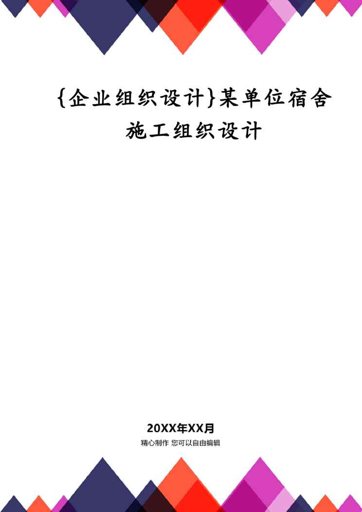 不久前,最新文档《{企业组织设计}某单位宿舍施工组织设计》全文正式在本站发布,感兴趣的用户可以下载阅读。 声明:本站所有文章,如无特殊说明或标注,均为本站原创发布。任何个人或组织,在未征得本站同意时,禁止复制、盗用、采集、发布本站内容到任何网站、书籍等各类媒体平台。如若本站内容侵犯了原著者的合法权益,可联系我们进行处理。