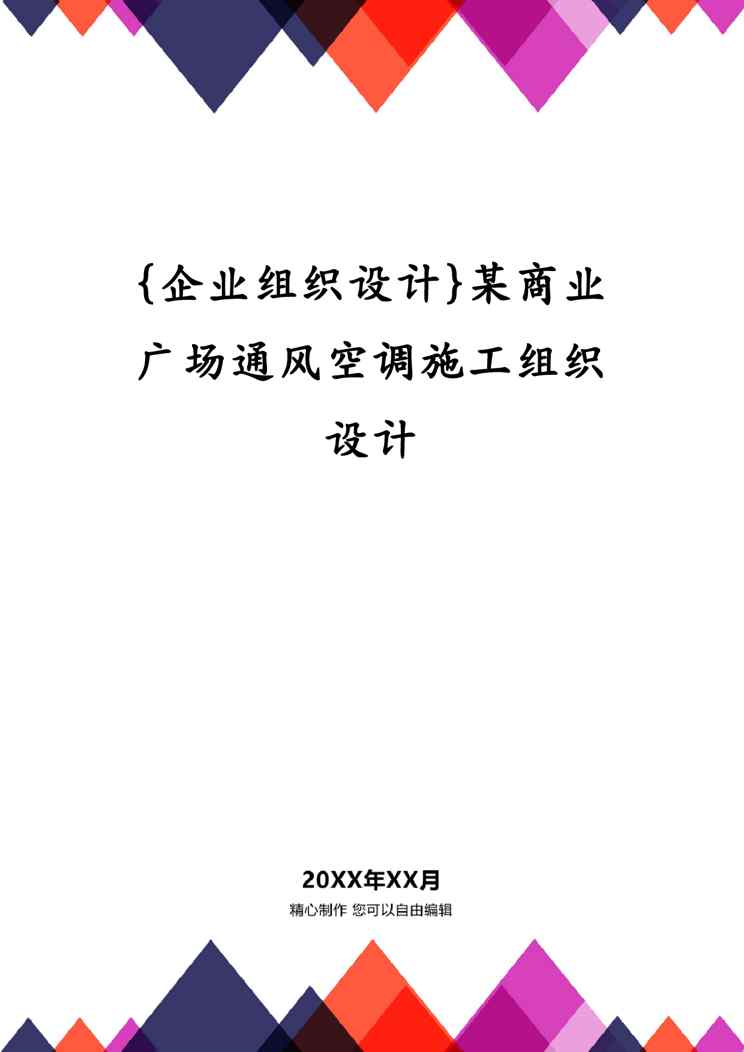本站正式发布了《{企业组织设计}某商业广场通风空调施工组织设计》文档,文档详细内容可下载阅读。 声明:本站所有文章,如无特殊说明或标注,均为本站原创发布。任何个人或组织,在未征得本站同意时,禁止复制、盗用、采集、发布本站内容到任何网站、书籍等各类媒体平台。如若本站内容侵犯了原著者的合法权益,可联系我们进行处理。
