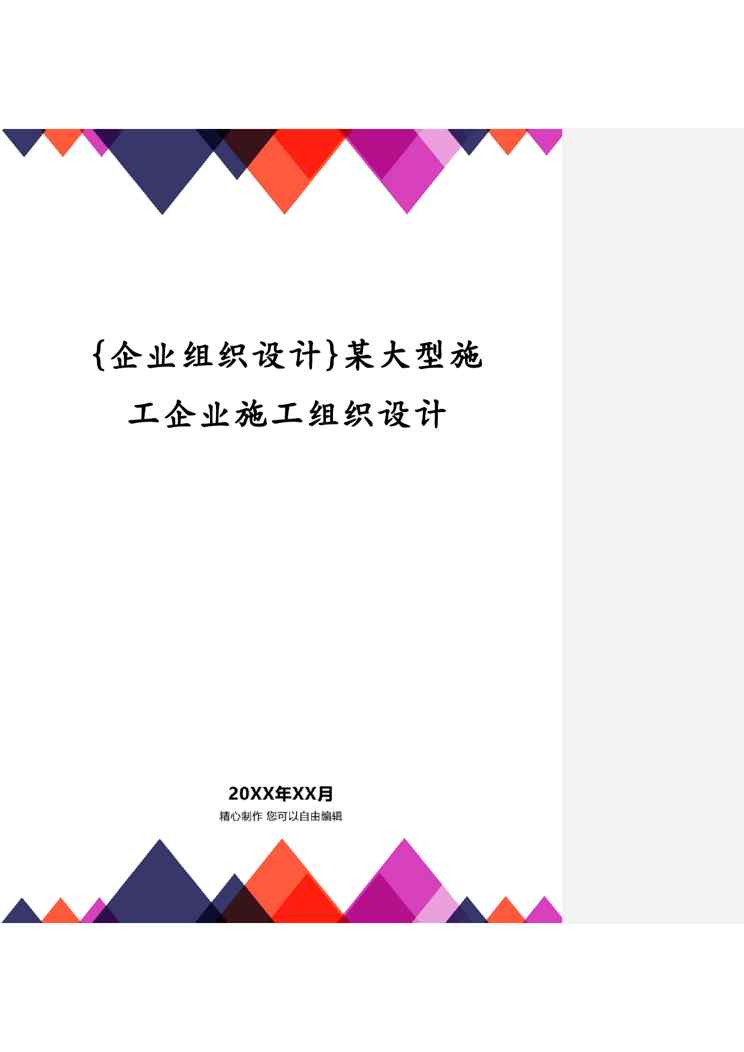 不久前,最新文档《{企业组织设计}某大型施工企业施工组织设计》全文正式在本站发布,感兴趣的用户可以下载阅读。 声明:本站所有文章,如无特殊说明或标注,均为本站原创发布。任何个人或组织,在未征得本站同意时,禁止复制、盗用、采集、发布本站内容到任何网站、书籍等各类媒体平台。如若本站内容侵犯了原著者的合法权益,可联系我们进行处理。