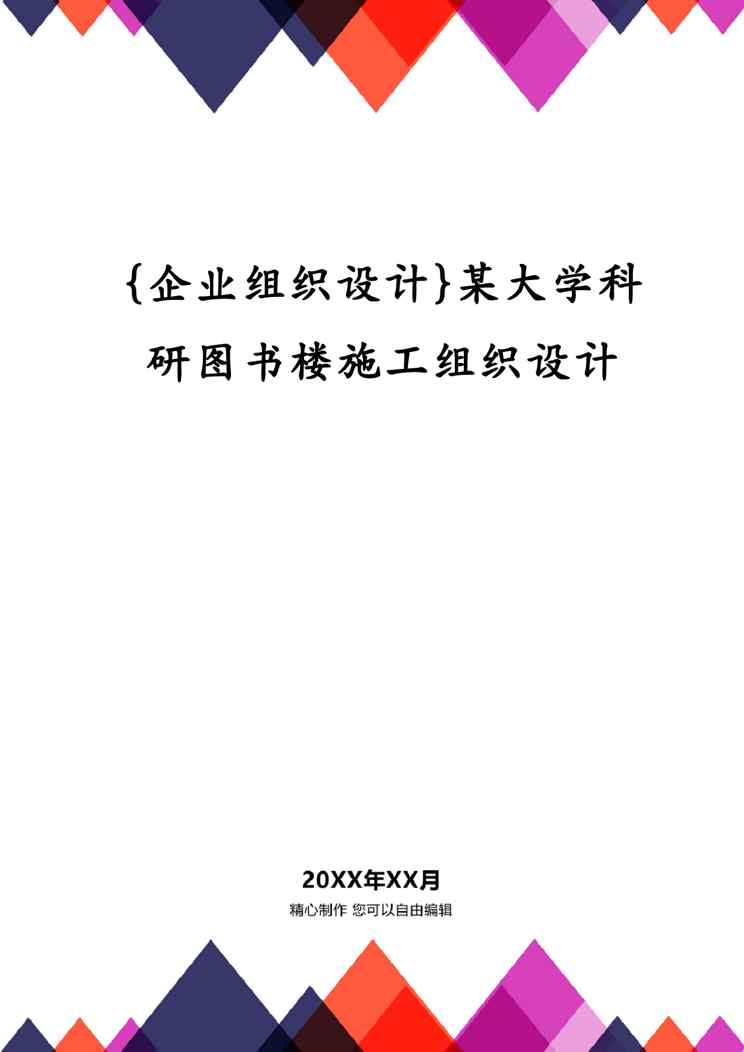 本站资深用户发布了最新的《{企业组织设计}某大学科研图书楼施工组织设计》文档,以下内容为预览,详细内容可下载阅读。 声明:本站所有文章,如无特殊说明或标注,均为本站原创发布。任何个人或组织,在未征得本站同意时,禁止复制、盗用、采集、发布本站内容到任何网站、书籍等各类媒体平台。如若本站内容侵犯了原著者的合法权益,可联系我们进行处理。
