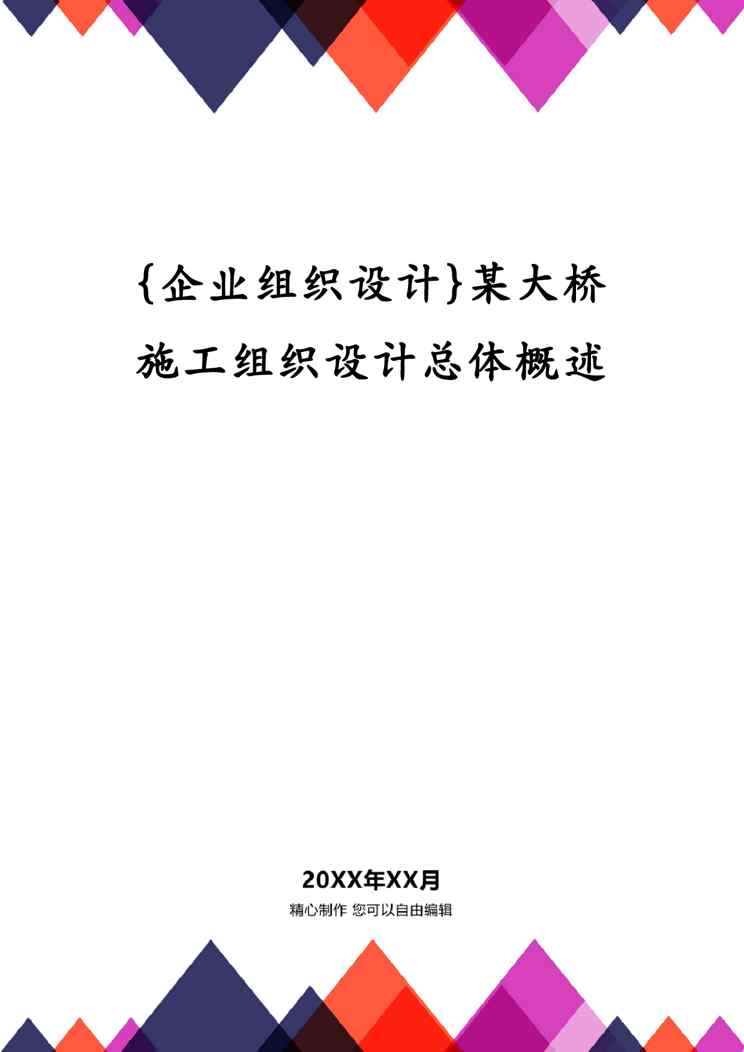 不久前,最新文档《{企业组织设计}某大桥施工组织设计总体概述》全文正式在本站发布,感兴趣的用户可以下载阅读。 声明:本站所有文章,如无特殊说明或标注,均为本站原创发布。任何个人或组织,在未征得本站同意时,禁止复制、盗用、采集、发布本站内容到任何网站、书籍等各类媒体平台。如若本站内容侵犯了原著者的合法权益,可联系我们进行处理。