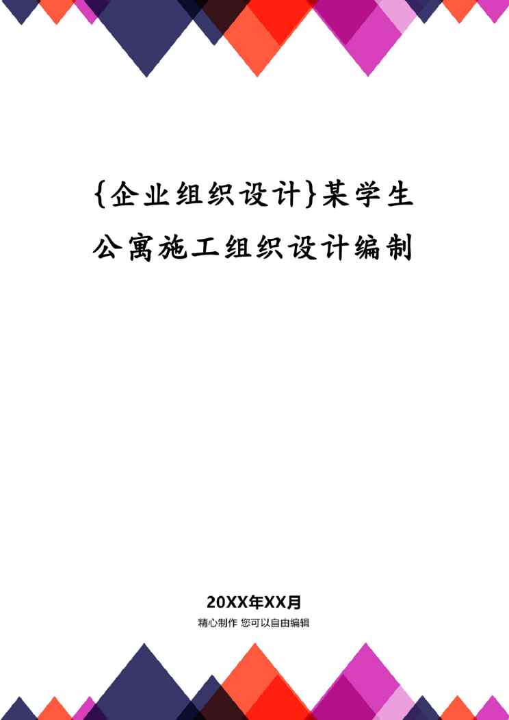 本站正式发布了《{企业组织设计}某学生公寓施工组织设计编制》文档,文档详细内容可下载阅读。 声明:本站所有文章,如无特殊说明或标注,均为本站原创发布。任何个人或组织,在未征得本站同意时,禁止复制、盗用、采集、发布本站内容到任何网站、书籍等各类媒体平台。如若本站内容侵犯了原著者的合法权益,可联系我们进行处理。