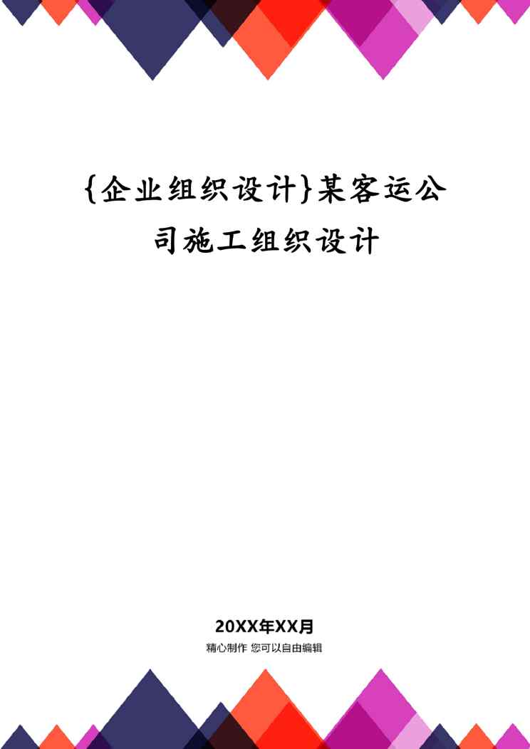 本站正式发布了《{企业组织设计}某客运公司施工组织设计》文档,文档详细内容可下载阅读。 声明:本站所有文章,如无特殊说明或标注,均为本站原创发布。任何个人或组织,在未征得本站同意时,禁止复制、盗用、采集、发布本站内容到任何网站、书籍等各类媒体平台。如若本站内容侵犯了原著者的合法权益,可联系我们进行处理。