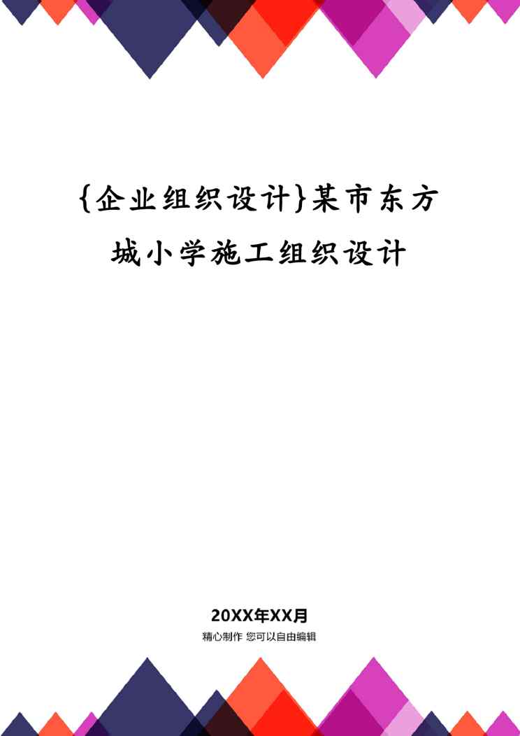 本站正式发布了《{企业组织设计}某市东方城小学施工组织设计》文档,文档详细内容可下载阅读。 声明:本站所有文章,如无特殊说明或标注,均为本站原创发布。任何个人或组织,在未征得本站同意时,禁止复制、盗用、采集、发布本站内容到任何网站、书籍等各类媒体平台。如若本站内容侵犯了原著者的合法权益,可联系我们进行处理。