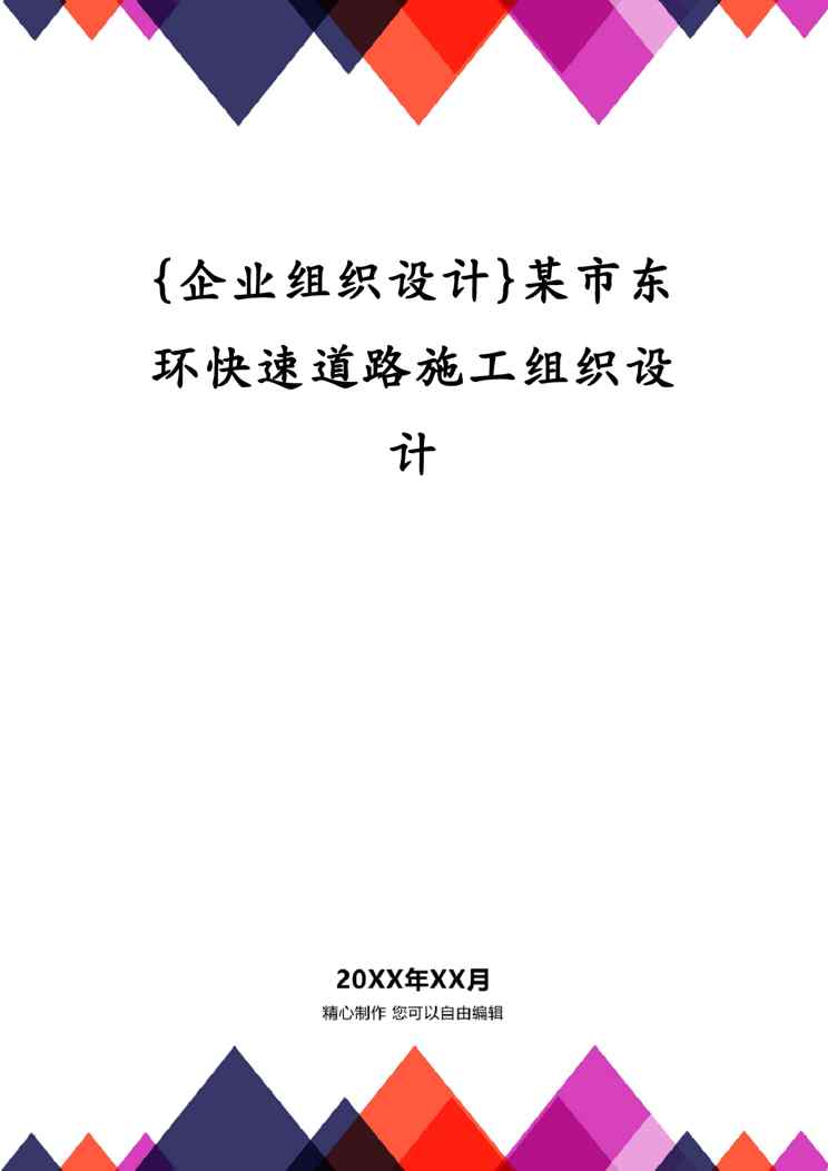 不久前,最新文档《{企业组织设计}某市东环快速道路施工组织设计》全文正式在本站发布,感兴趣的用户可以下载阅读。 声明:本站所有文章,如无特殊说明或标注,均为本站原创发布。任何个人或组织,在未征得本站同意时,禁止复制、盗用、采集、发布本站内容到任何网站、书籍等各类媒体平台。如若本站内容侵犯了原著者的合法权益,可联系我们进行处理。