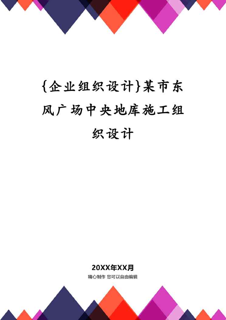 本站资深用户发布了最新的《{企业组织设计}某市东风广场中央地库施工组织设计》文档,以下内容为预览,详细内容可下载阅读。 声明:本站所有文章,如无特殊说明或标注,均为本站原创发布。任何个人或组织,在未征得本站同意时,禁止复制、盗用、采集、发布本站内容到任何网站、书籍等各类媒体平台。如若本站内容侵犯了原著者的合法权益,可联系我们进行处理。