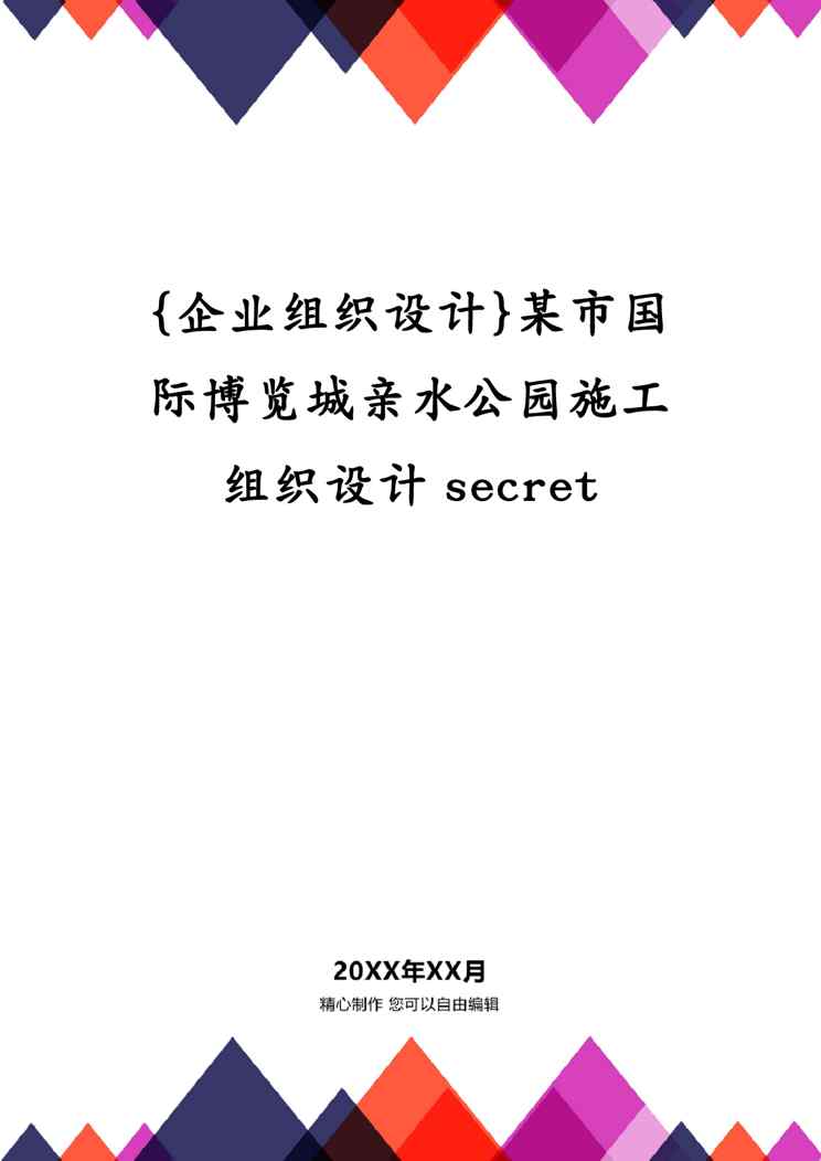 不久前,最新文档《{企业组织设计}某市国际博览城亲水公园施工组织设计secret》全文正式在本站发布,感兴趣的用户可以下载阅读。 声明:本站所有文章,如无特殊说明或标注,均为本站原创发布。任何个人或组织,在未征得本站同意时,禁止复制、盗用、采集、发布本站内容到任何网站、书籍等各类媒体平台。如若本站内容侵犯了原著者的合法权益,可联系我们进行处理。