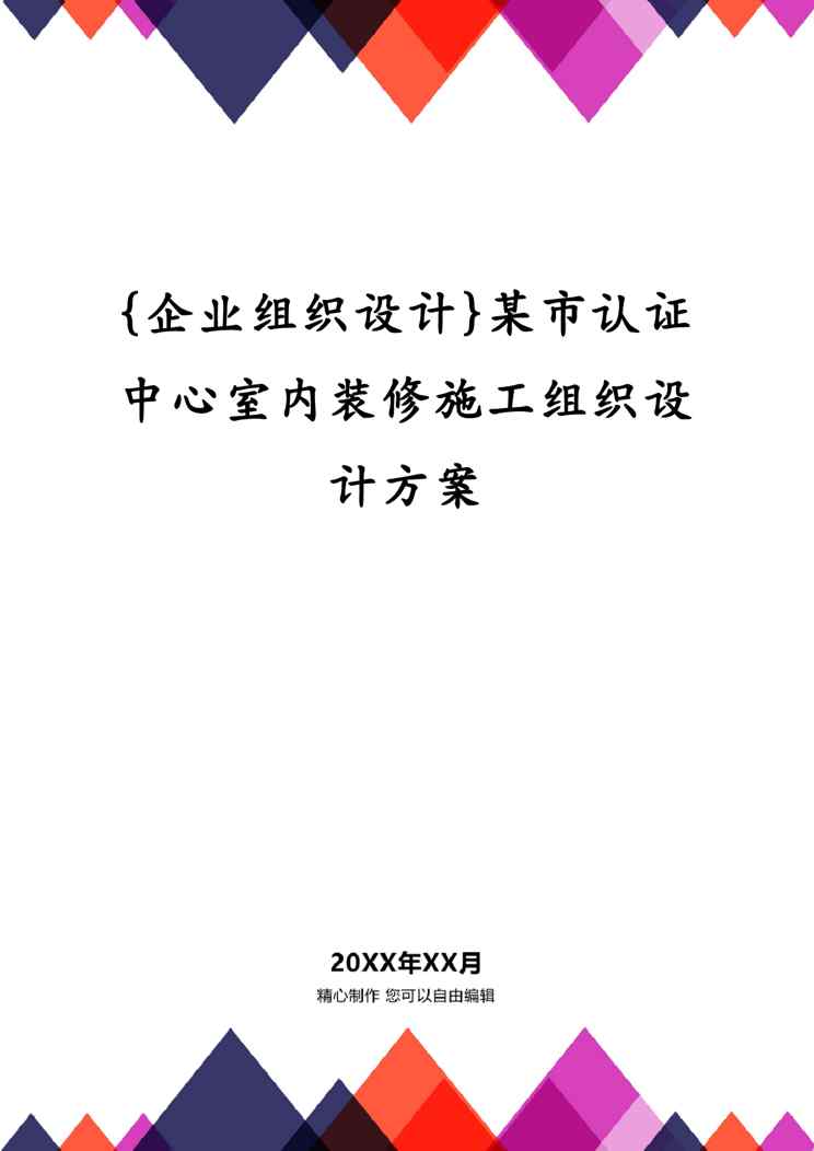 本站资深用户发布了最新的《{企业组织设计}某市认证中心室内装修施工组织设计方案》文档,以下内容为预览,详细内容可下载阅读。 声明:本站所有文章,如无特殊说明或标注,均为本站原创发布。任何个人或组织,在未征得本站同意时,禁止复制、盗用、采集、发布本站内容到任何网站、书籍等各类媒体平台。如若本站内容侵犯了原著者的合法权益,可联系我们进行处理。