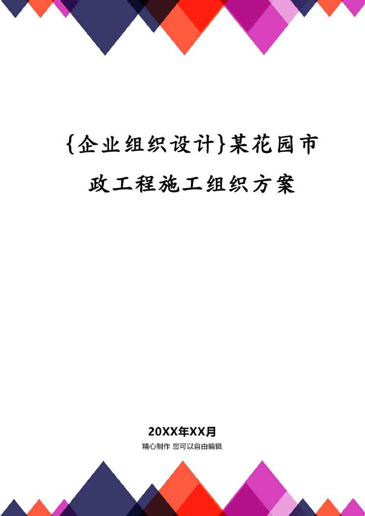 本站资深用户发布了最新的《{企业组织设计}某花园市政工程施工组织方案》文档,以下内容为预览,详细内容可下载阅读。 声明:本站所有文章,如无特殊说明或标注,均为本站原创发布。任何个人或组织,在未征得本站同意时,禁止复制、盗用、采集、发布本站内容到任何网站、书籍等各类媒体平台。如若本站内容侵犯了原著者的合法权益,可联系我们进行处理。