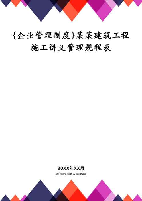 本站资深用户发布了最新的《{企业管理制度}某某建筑工程施工讲义管理规程表》文档,以下内容为预览,详细内容可下载阅读。 声明:本站所有文章,如无特殊说明或标注,均为本站原创发布。任何个人或组织,在未征得本站同意时,禁止复制、盗用、采集、发布本站内容到任何网站、书籍等各类媒体平台。如若本站内容侵犯了原著者的合法权益,可联系我们进行处理。