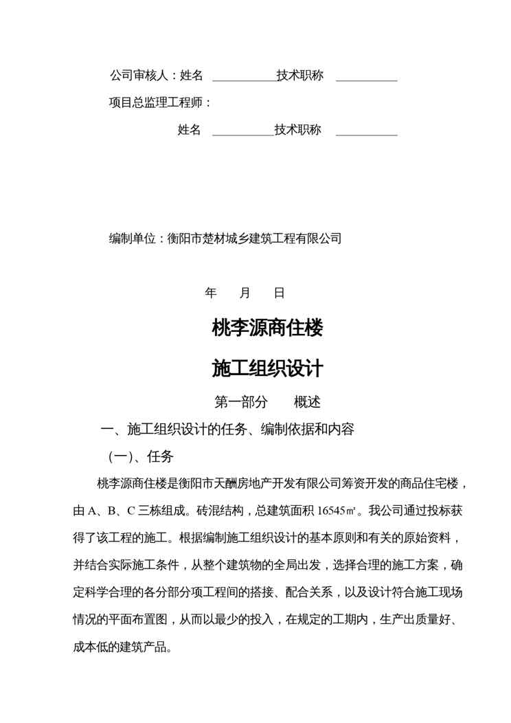 不久前,最新文档《{企业组织设计}桃李源商住楼施工组织设计》全文正式在本站发布,感兴趣的用户可以下载阅读。 声明:本站所有文章,如无特殊说明或标注,均为本站原创发布。任何个人或组织,在未征得本站同意时,禁止复制、盗用、采集、发布本站内容到任何网站、书籍等各类媒体平台。如若本站内容侵犯了原著者的合法权益,可联系我们进行处理。
