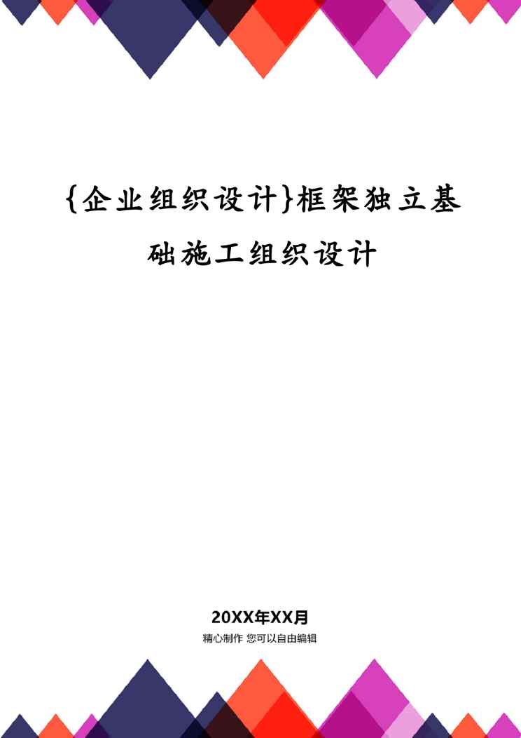 本站资深用户发布了最新的《{企业组织设计}框架独立基础施工组织设计》文档,以下内容为预览,详细内容可下载阅读。 声明:本站所有文章,如无特殊说明或标注,均为本站原创发布。任何个人或组织,在未征得本站同意时,禁止复制、盗用、采集、发布本站内容到任何网站、书籍等各类媒体平台。如若本站内容侵犯了原著者的合法权益,可联系我们进行处理。