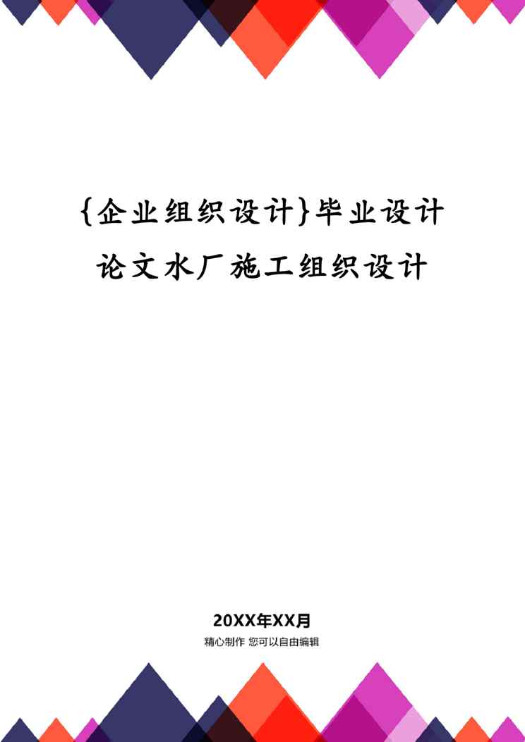 不久前,最新文档《{企业组织设计}毕业设计论文水厂施工组织设计》全文正式在本站发布,感兴趣的用户可以下载阅读。 声明:本站所有文章,如无特殊说明或标注,均为本站原创发布。任何个人或组织,在未征得本站同意时,禁止复制、盗用、采集、发布本站内容到任何网站、书籍等各类媒体平台。如若本站内容侵犯了原著者的合法权益,可联系我们进行处理。