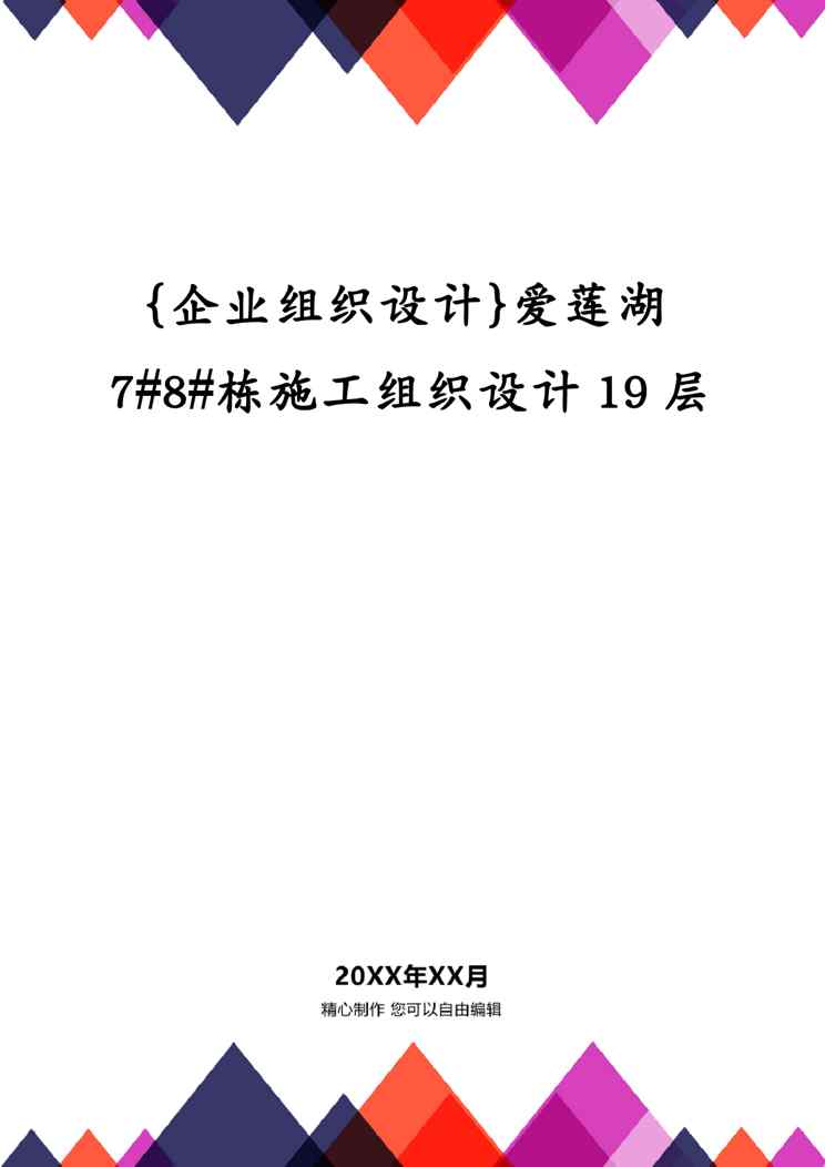 本站正式发布了《{企业组织设计}爱莲湖7#8#栋施工组织设计19层》文档,文档详细内容可下载阅读。 声明:本站所有文章,如无特殊说明或标注,均为本站原创发布。任何个人或组织,在未征得本站同意时,禁止复制、盗用、采集、发布本站内容到任何网站、书籍等各类媒体平台。如若本站内容侵犯了原著者的合法权益,可联系我们进行处理。