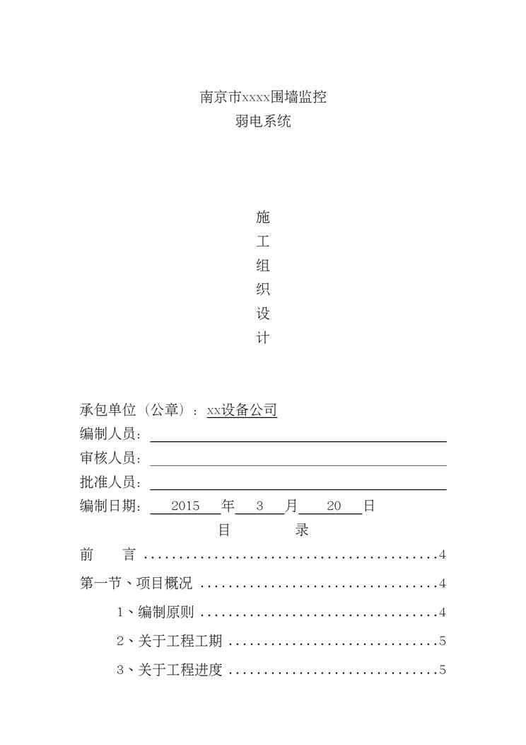 本站资深用户发布了最新的《{企业组织设计}监控施工组织设计DOC66页》文档,以下内容为预览,详细内容可下载阅读。 声明:本站所有文章,如无特殊说明或标注,均为本站原创发布。任何个人或组织,在未征得本站同意时,禁止复制、盗用、采集、发布本站内容到任何网站、书籍等各类媒体平台。如若本站内容侵犯了原著者的合法权益,可联系我们进行处理。