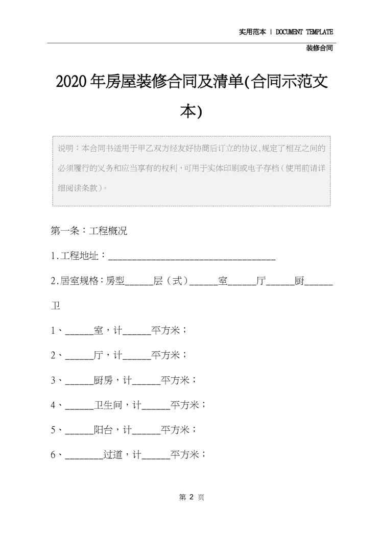 本站正式发布了《2020年房屋装修合同及清单(合同示范文本)》文档,文档详细内容可下载阅读。 声明:本站所有文章,如无特殊说明或标注,均为本站原创发布。任何个人或组织,在未征得本站同意时,禁止复制、盗用、采集、发布本站内容到任何网站、书籍等各类媒体平台。如若本站内容侵犯了原著者的合法权益,可联系我们进行处理。