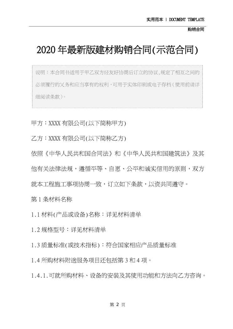本站资深用户发布了最新的《2020年最新版建材购销合同(示范合同)》文档,以下内容为预览,详细内容可下载阅读。 声明:本站所有文章,如无特殊说明或标注,均为本站原创发布。任何个人或组织,在未征得本站同意时,禁止复制、盗用、采集、发布本站内容到任何网站、书籍等各类媒体平台。如若本站内容侵犯了原著者的合法权益,可联系我们进行处理。