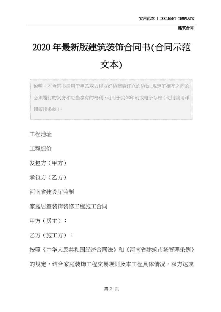 本站正式发布了《2020年最新版建筑装饰合同书(合同示范文本)》文档,文档详细内容可下载阅读。 声明:本站所有文章,如无特殊说明或标注,均为本站原创发布。任何个人或组织,在未征得本站同意时,禁止复制、盗用、采集、发布本站内容到任何网站、书籍等各类媒体平台。如若本站内容侵犯了原著者的合法权益,可联系我们进行处理。