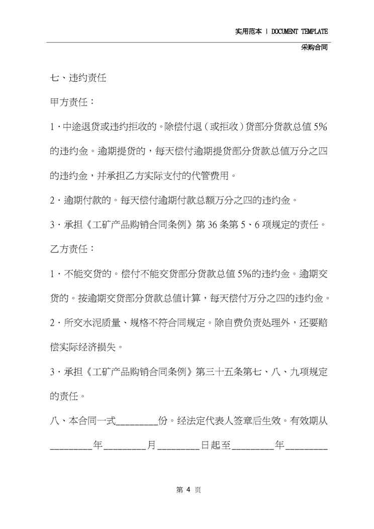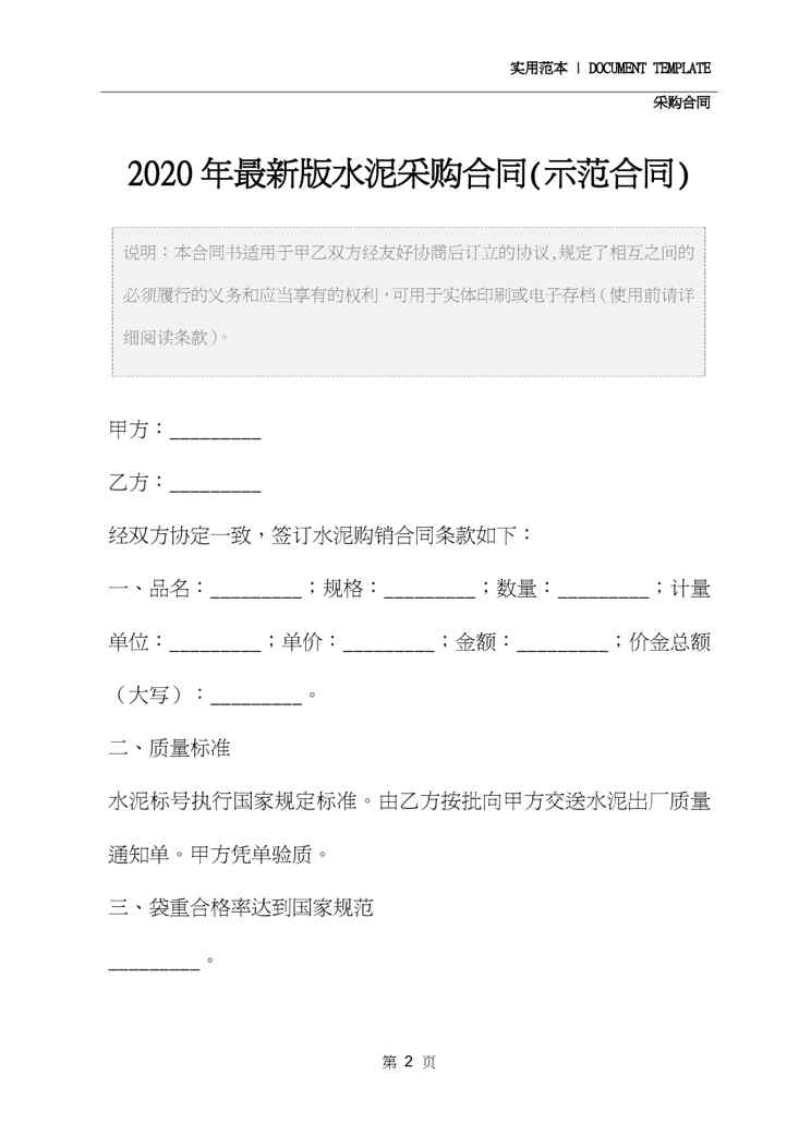 不久前,最新文档《2020年最新版水泥采购合同(示范合同)》全文正式在本站发布,感兴趣的用户可以下载阅读。 声明:本站所有文章,如无特殊说明或标注,均为本站原创发布。任何个人或组织,在未征得本站同意时,禁止复制、盗用、采集、发布本站内容到任何网站、书籍等各类媒体平台。如若本站内容侵犯了原著者的合法权益,可联系我们进行处理。