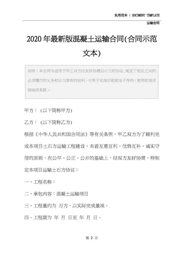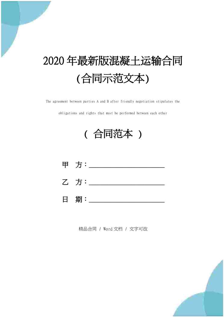 2020年最新版混凝土运输合同(合同示范文本)2020年最新版混凝土运输合同(合同示范文本)2020年最新版混凝土运输合同(合同示范文本)2020年最新版混凝土运输合同(合同示范文本)2020年最新版混凝土运输合同(合同示范文本)