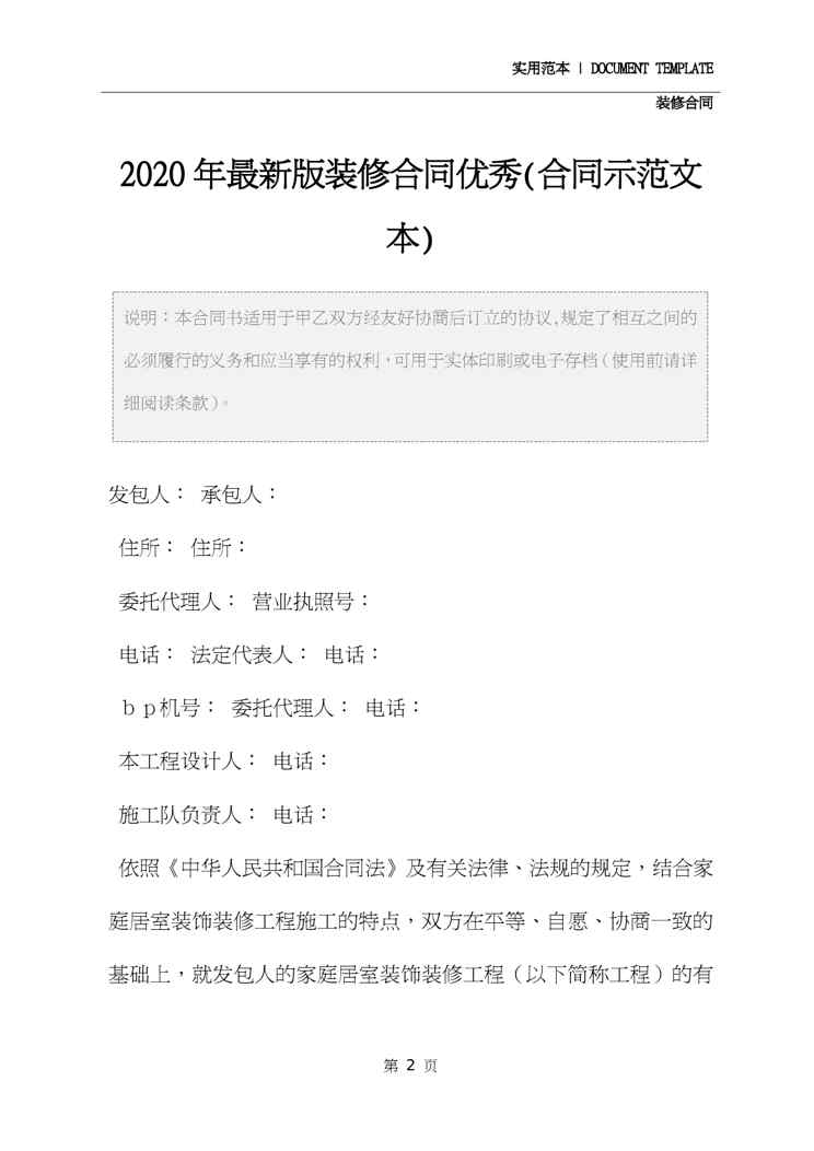 2020年最新版装修合同优秀(合同示范文本)2020年最新版装修合同优秀(合同示范文本)2020年最新版装修合同优秀(合同示范文本)2020年最新版装修合同优秀(合同示范文本)2020年最新版装修合同优秀(合同示范文本)