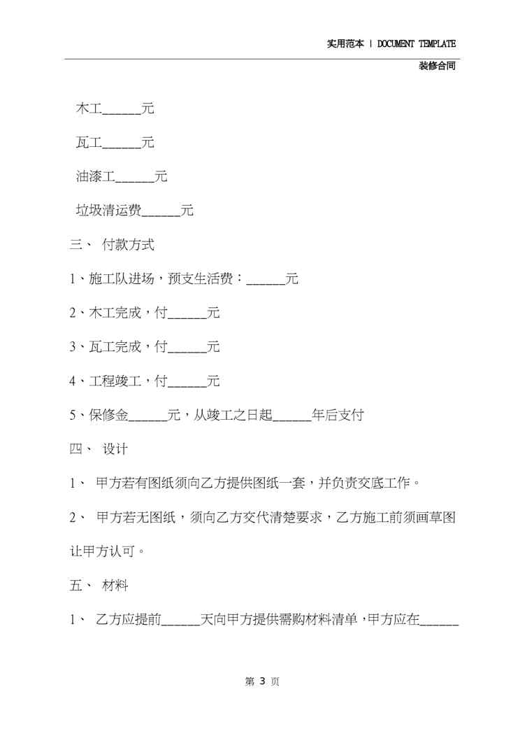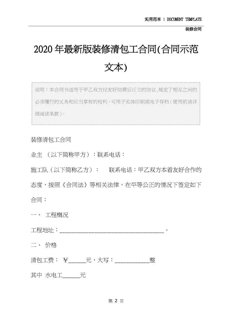 本站资深用户发布了最新的《2020年最新版装修清包工合同(合同示范文本)》文档,以下内容为预览,详细内容可下载阅读。 声明:本站所有文章,如无特殊说明或标注,均为本站原创发布。任何个人或组织,在未征得本站同意时,禁止复制、盗用、采集、发布本站内容到任何网站、书籍等各类媒体平台。如若本站内容侵犯了原著者的合法权益,可联系我们进行处理。