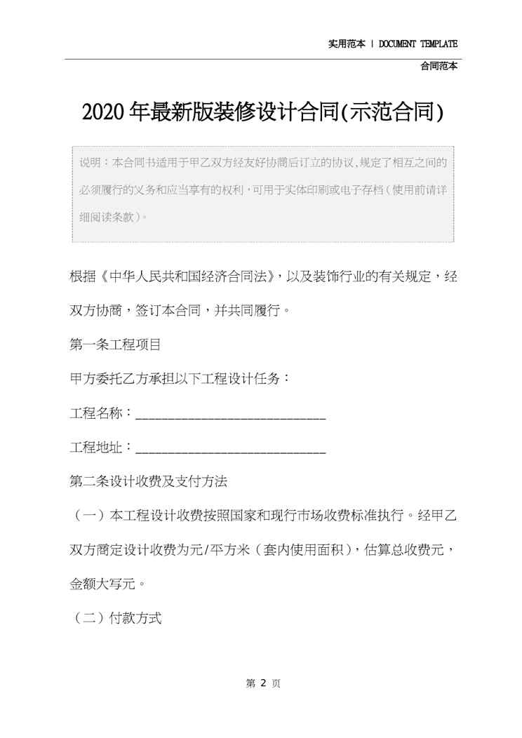 本站正式发布了《2020年最新版装修设计合同(示范合同)》文档,文档详细内容可下载阅读。 声明:本站所有文章,如无特殊说明或标注,均为本站原创发布。任何个人或组织,在未征得本站同意时,禁止复制、盗用、采集、发布本站内容到任何网站、书籍等各类媒体平台。如若本站内容侵犯了原著者的合法权益,可联系我们进行处理。