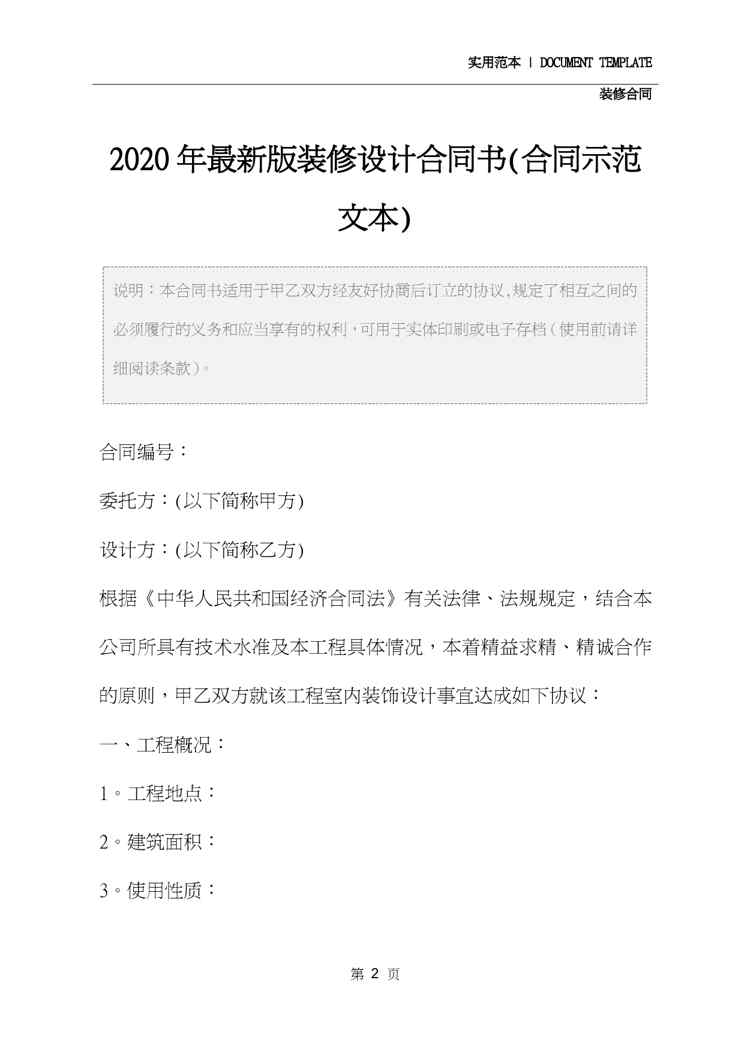 本站资深用户发布了最新的《2020年最新版装修设计合同书(合同示范文本)》文档,以下内容为预览,详细内容可下载阅读。 声明:本站所有文章,如无特殊说明或标注,均为本站原创发布。任何个人或组织,在未征得本站同意时,禁止复制、盗用、采集、发布本站内容到任何网站、书籍等各类媒体平台。如若本站内容侵犯了原著者的合法权益,可联系我们进行处理。