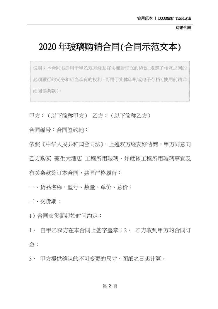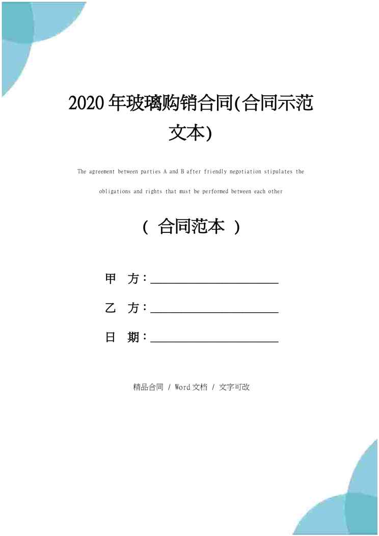 本站正式发布了《2020年玻璃购销合同(合同示范文本)》文档,文档详细内容可下载阅读。 声明:本站所有文章,如无特殊说明或标注,均为本站原创发布。任何个人或组织,在未征得本站同意时,禁止复制、盗用、采集、发布本站内容到任何网站、书籍等各类媒体平台。如若本站内容侵犯了原著者的合法权益,可联系我们进行处理。