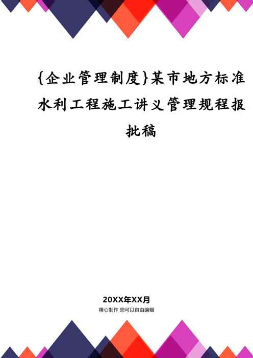本站正式发布了《{企业管理制度}某市地方标准水利工程施工讲义管理规程报批稿》文档,文档详细内容可下载阅读。 声明:本站所有文章,如无特殊说明或标注,均为本站原创发布。任何个人或组织,在未征得本站同意时,禁止复制、盗用、采集、发布本站内容到任何网站、书籍等各类媒体平台。如若本站内容侵犯了原著者的合法权益,可联系我们进行处理。