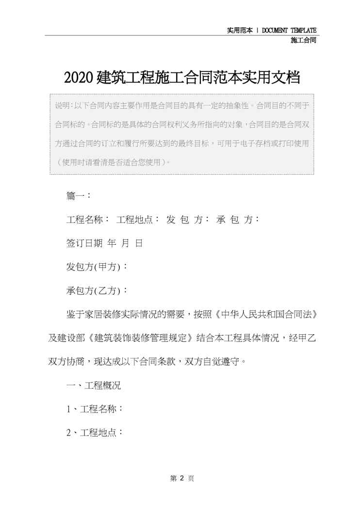 不久前,最新文档《2020建筑工程施工合同范本实用》全文正式在本站发布,感兴趣的用户可以下载阅读。 声明:本站所有文章,如无特殊说明或标注,均为本站原创发布。任何个人或组织,在未征得本站同意时,禁止复制、盗用、采集、发布本站内容到任何网站、书籍等各类媒体平台。如若本站内容侵犯了原著者的合法权益,可联系我们进行处理。