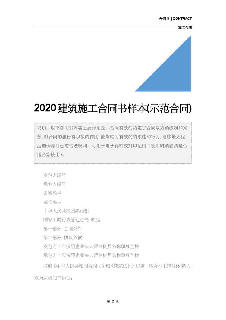 本站资深用户发布了最新的《2020建筑施工合同书样本(示范合同)》文档,以下内容为预览,详细内容可下载阅读。 声明:本站所有文章,如无特殊说明或标注,均为本站原创发布。任何个人或组织,在未征得本站同意时,禁止复制、盗用、采集、发布本站内容到任何网站、书籍等各类媒体平台。如若本站内容侵犯了原著者的合法权益,可联系我们进行处理。