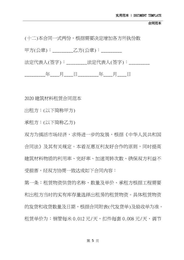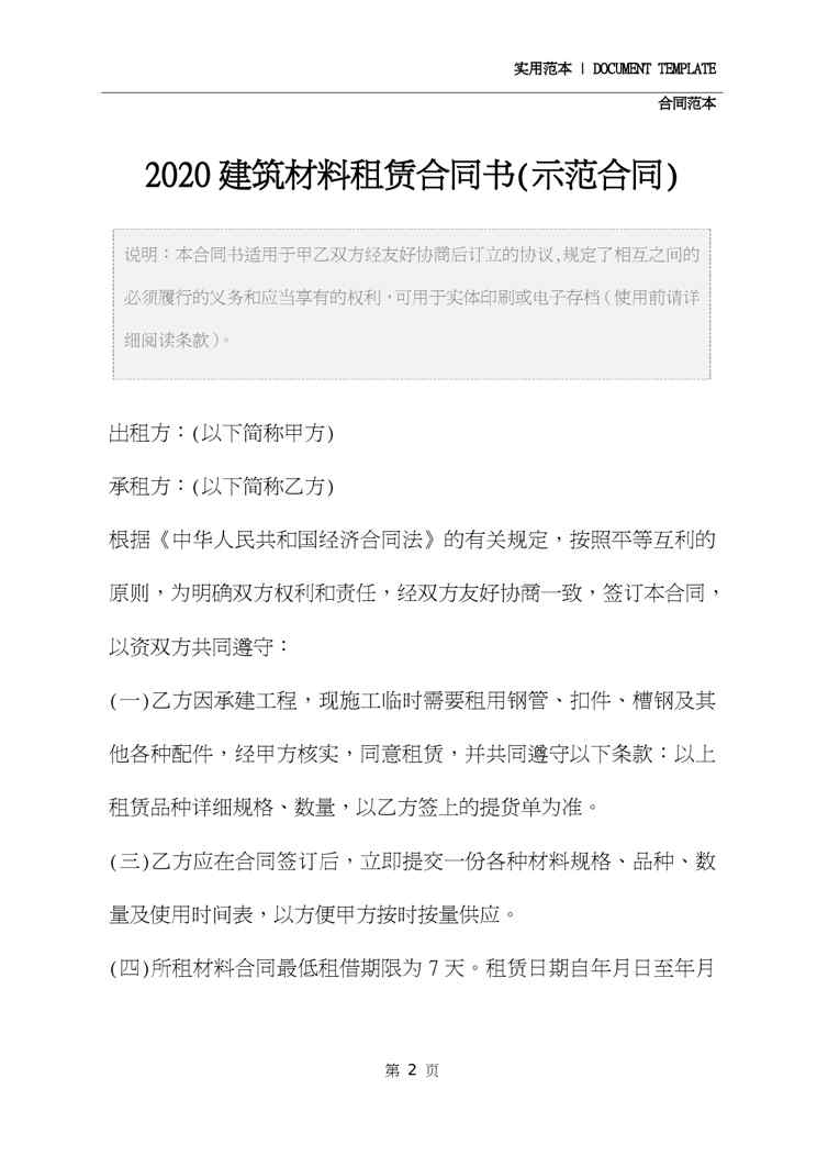 不久前,最新文档《2020建筑材料租赁合同书(示范合同)》全文正式在本站发布,感兴趣的用户可以下载阅读。 声明:本站所有文章,如无特殊说明或标注,均为本站原创发布。任何个人或组织,在未征得本站同意时,禁止复制、盗用、采集、发布本站内容到任何网站、书籍等各类媒体平台。如若本站内容侵犯了原著者的合法权益,可联系我们进行处理。