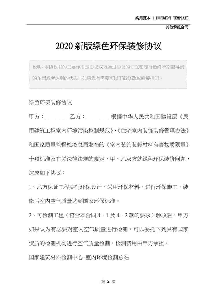 不久前,最新文档《2020新版绿色环保装修协议》全文正式在本站发布,感兴趣的用户可以下载阅读。 声明:本站所有文章,如无特殊说明或标注,均为本站原创发布。任何个人或组织,在未征得本站同意时,禁止复制、盗用、采集、发布本站内容到任何网站、书籍等各类媒体平台。如若本站内容侵犯了原著者的合法权益,可联系我们进行处理。