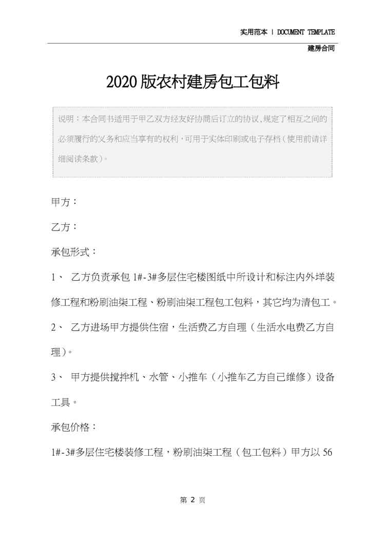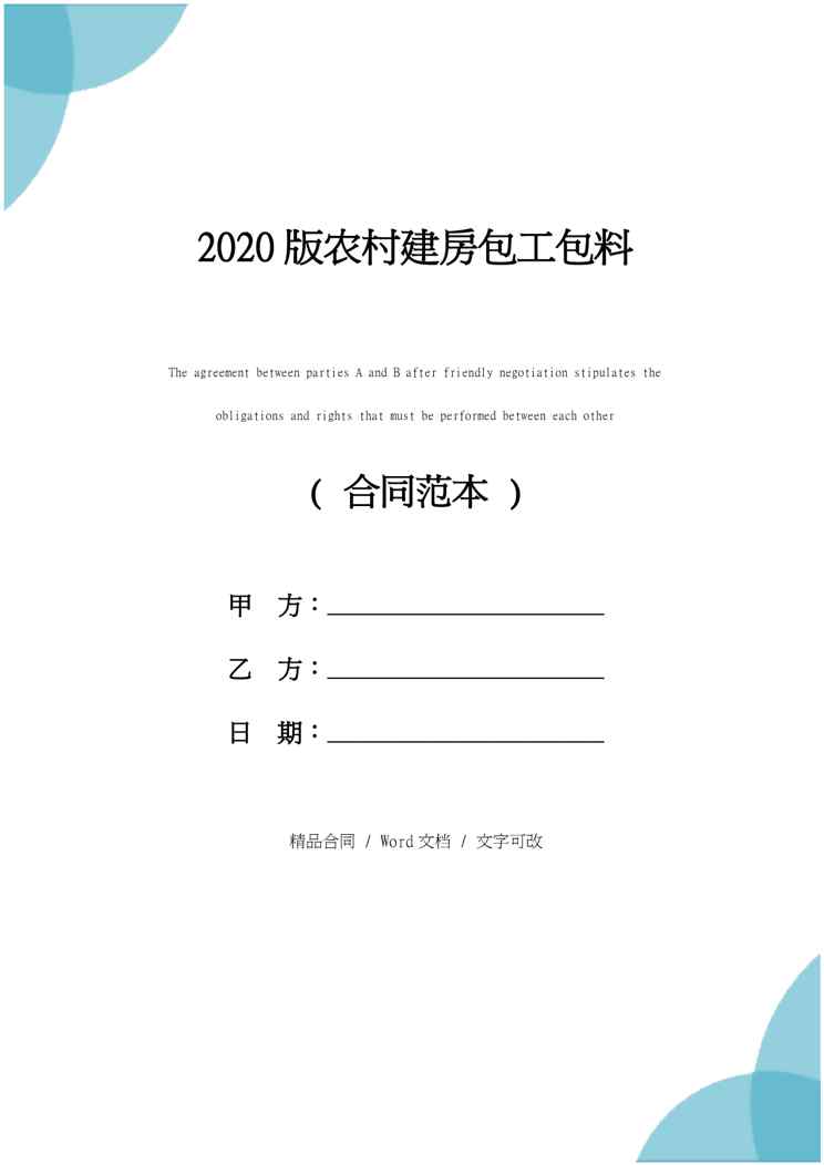 本站资深用户发布了最新的《2020版农村建房包工包料》文档,以下内容为预览,详细内容可下载阅读。 声明:本站所有文章,如无特殊说明或标注,均为本站原创发布。任何个人或组织,在未征得本站同意时,禁止复制、盗用、采集、发布本站内容到任何网站、书籍等各类媒体平台。如若本站内容侵犯了原著者的合法权益,可联系我们进行处理。