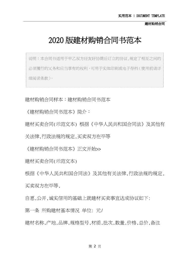 本站正式发布了《2020版建材购销合同书范本》文档,文档详细内容可下载阅读。 声明:本站所有文章,如无特殊说明或标注,均为本站原创发布。任何个人或组织,在未征得本站同意时,禁止复制、盗用、采集、发布本站内容到任何网站、书籍等各类媒体平台。如若本站内容侵犯了原著者的合法权益,可联系我们进行处理。