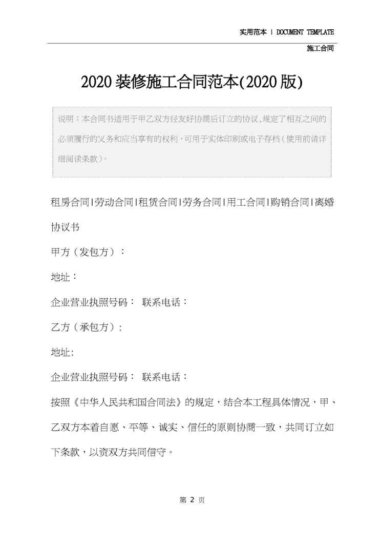 2020装修施工合同范本(2020版)2020装修施工合同范本(2020版)2020装修施工合同范本(2020版)2020装修施工合同范本(2020版)2020装修施工合同范本(2020版)