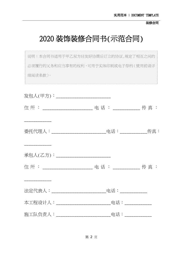 不久前,最新文档《2020装饰装修合同书(示范合同)》全文正式在本站发布,感兴趣的用户可以下载阅读。 声明:本站所有文章,如无特殊说明或标注,均为本站原创发布。任何个人或组织,在未征得本站同意时,禁止复制、盗用、采集、发布本站内容到任何网站、书籍等各类媒体平台。如若本站内容侵犯了原著者的合法权益,可联系我们进行处理。