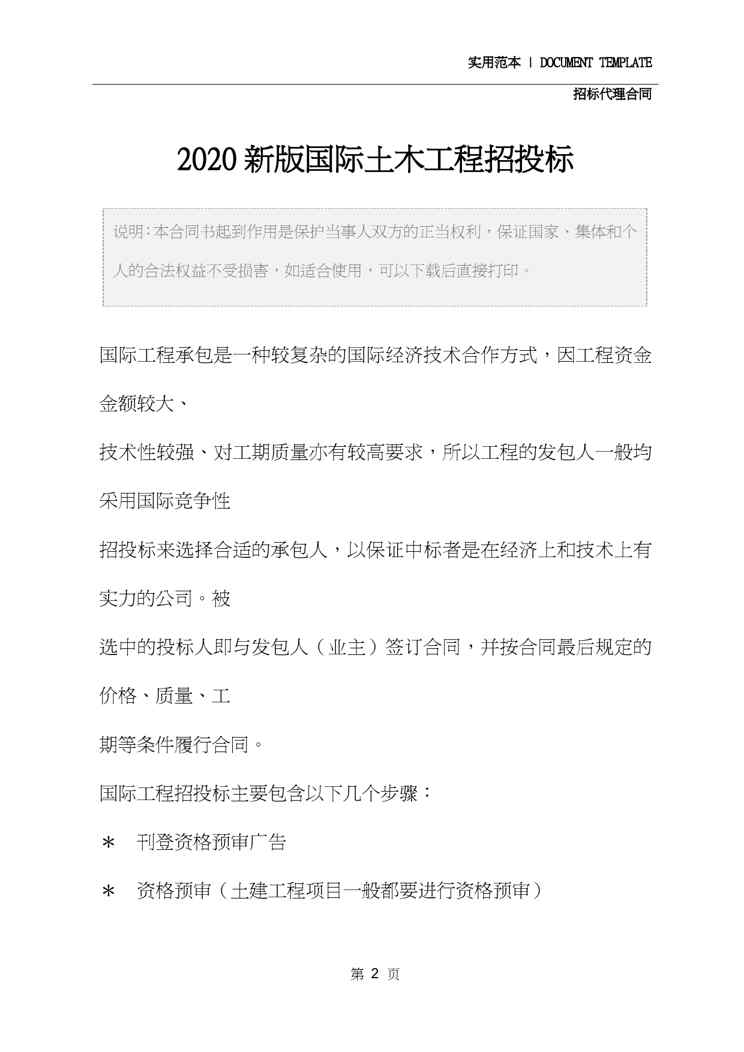 不久前,最新文档《2021版国际土木工程招投标》全文正式在本站发布,感兴趣的用户可以下载阅读。 声明:本站所有文章,如无特殊说明或标注,均为本站原创发布。任何个人或组织,在未征得本站同意时,禁止复制、盗用、采集、发布本站内容到任何网站、书籍等各类媒体平台。如若本站内容侵犯了原著者的合法权益,可联系我们进行处理。