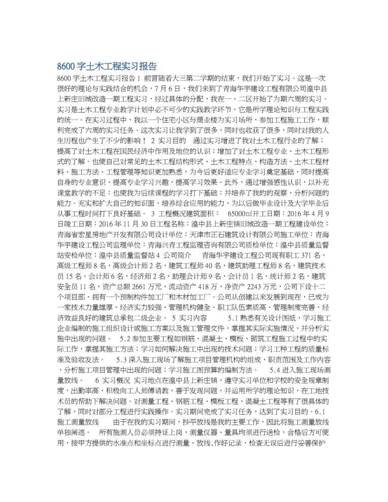 不久前,最新文档《8600字土木工程实习报告》全文正式在本站发布,感兴趣的用户可以下载阅读。 声明:本站所有文章,如无特殊说明或标注,均为本站原创发布。任何个人或组织,在未征得本站同意时,禁止复制、盗用、采集、发布本站内容到任何网站、书籍等各类媒体平台。如若本站内容侵犯了原著者的合法权益,可联系我们进行处理。