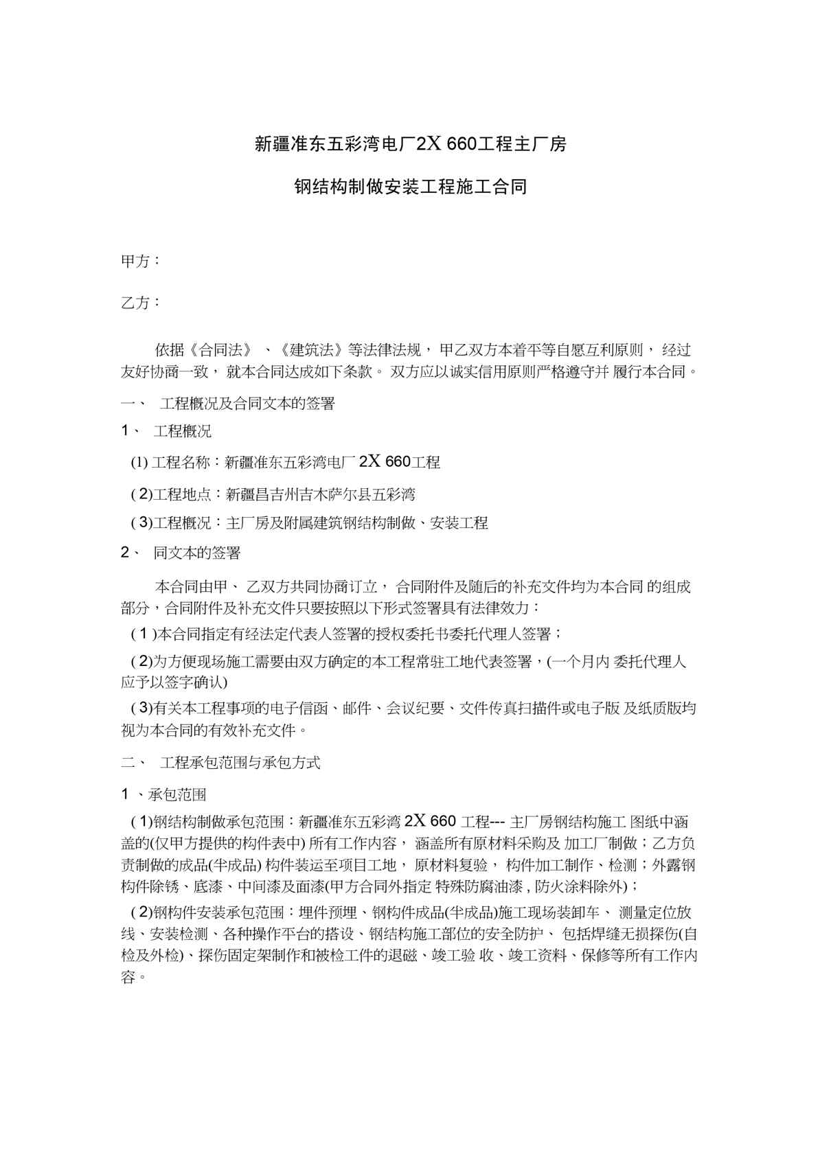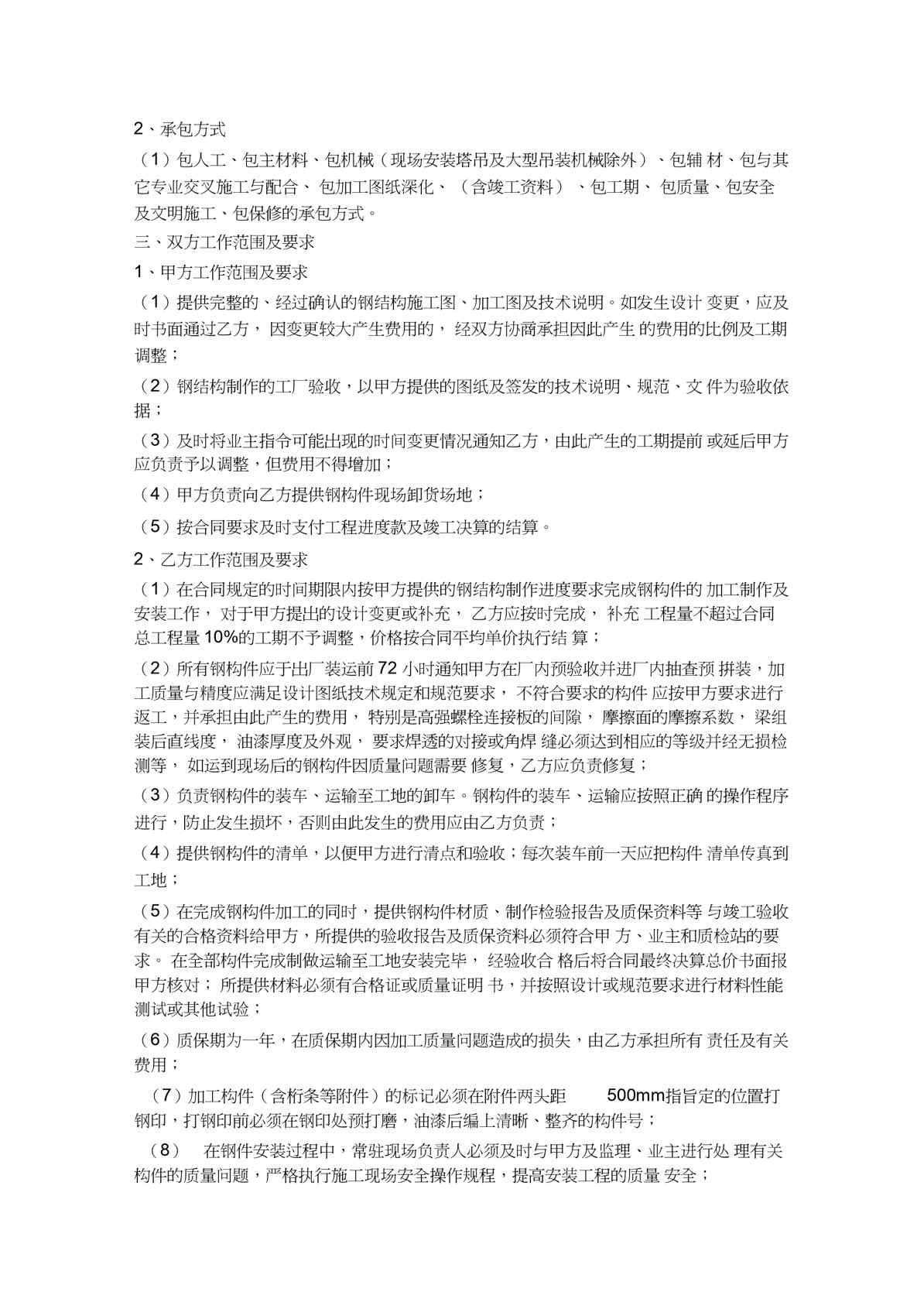 本站资深用户发布了最新的《B钢结构工程制做安装施工合同》文档,以下内容为预览,详细内容可下载阅读。 声明:本站所有文章,如无特殊说明或标注,均为本站原创发布。任何个人或组织,在未征得本站同意时,禁止复制、盗用、采集、发布本站内容到任何网站、书籍等各类媒体平台。如若本站内容侵犯了原著者的合法权益,可联系我们进行处理。